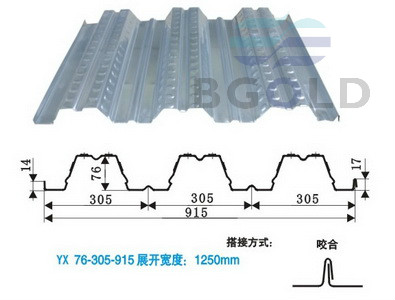YX76-305-915鍍鋅樓承板,也叫壓型鋼板、鋼承板、鋼樓承板,是76mm波高3W樓承板最常用板型。其波高76mm,波寬305mm,有效寬度為915mm。其采用1250mm熱鍍鋅鋼板為基材,經(jīng)機器輥壓成型。主要用做樓層板,具有強勁的砼握裹力,更優(yōu)越的結(jié)構(gòu)斷面性質(zhì)和耐火性能,使用階段:可代替底部受拉鋼筋,施工階段:可代替模板。廣泛應用于工業(yè)與民用建筑的樓面,大型公共建筑的高層樓面結(jié)構(gòu)等,具有造價低、節(jié)約鋼筋、強度高、更長使用年限等特點.