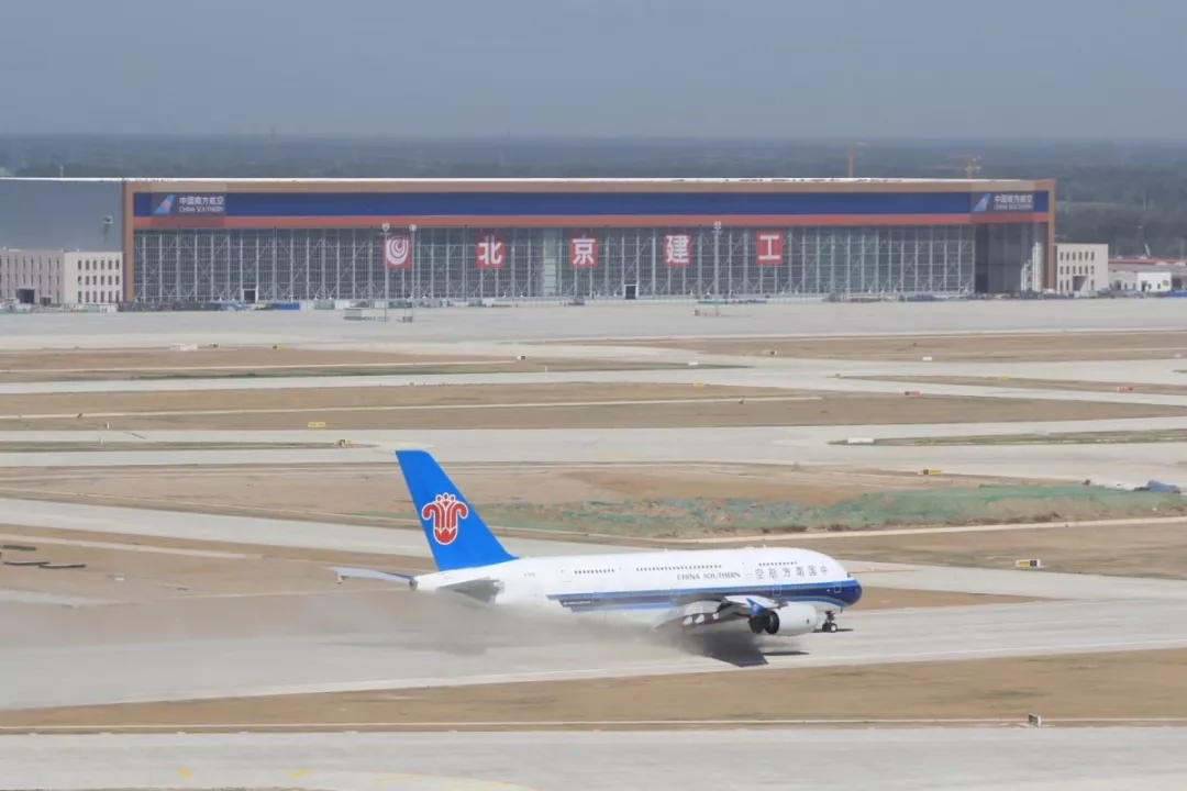 北京大興機(jī)場南航機(jī)庫,總面積3.9萬平米,鋼結(jié)構(gòu)屋架長404.5米,跨度為世界最大,是北京新機(jī)場南航基地內(nèi)體量最大的單體工程,是亞洲最大的飛機(jī)維修庫。機(jī)庫共設(shè)5個寬體機(jī)機(jī)位和3個窄體機(jī)機(jī)位,最多可同時容納包括2架空客A380、3架波音777在內(nèi)的12架飛機(jī)停放維修。南航機(jī)庫工程的設(shè)計(jì)、采購選材、施工建造全過程均體現(xiàn)出中國智慧、中國工藝,是100%的“中國建造”。