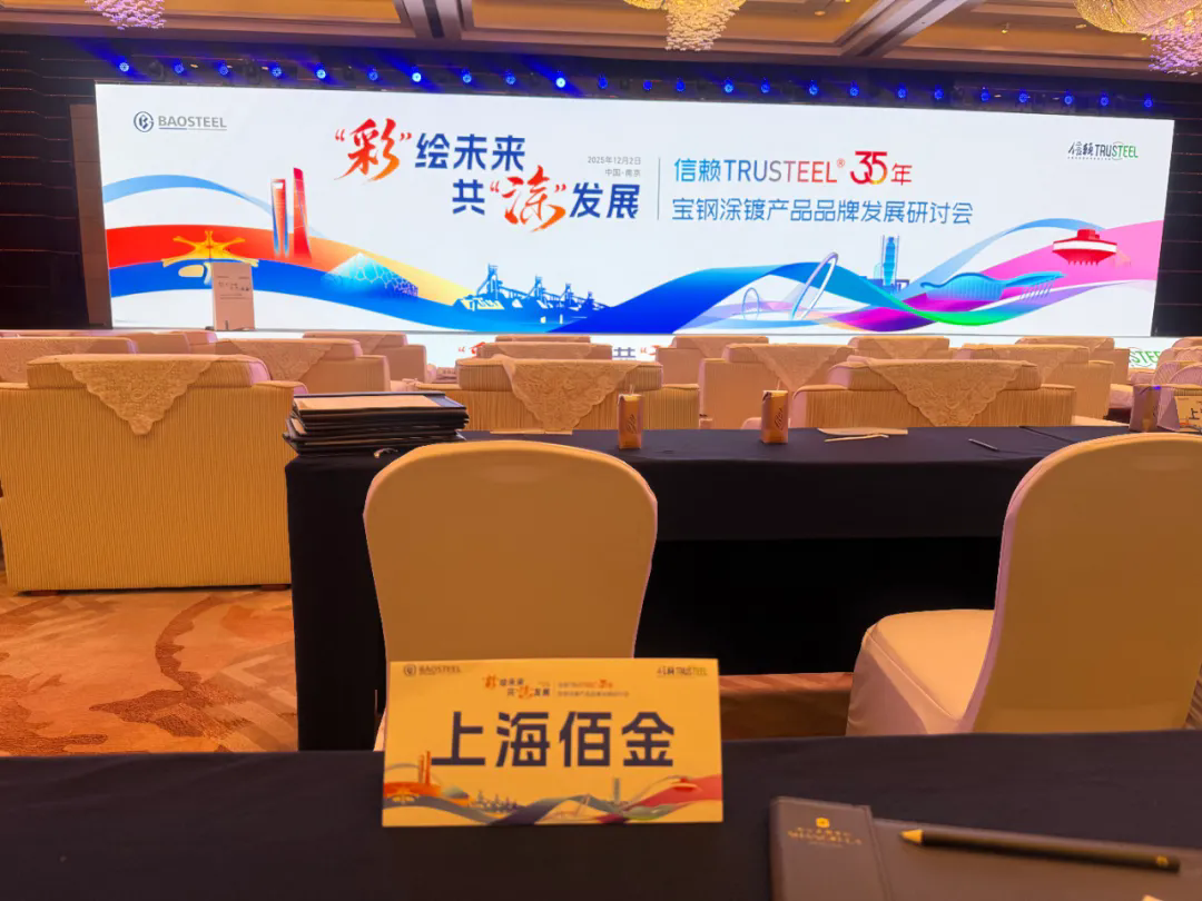 2025年12月2日,以“彩”繪未來 共“涂”發(fā)展 為主題的寶鋼股份“信賴TRUSTEEL® 35年涂鍍產品品牌發(fā)展研討會”在南京香格里拉酒店隆重舉行。上海佰金實業(yè)有限公司作為寶鋼涂鍍產品長期代理商,應邀參加此次行業(yè)盛會。