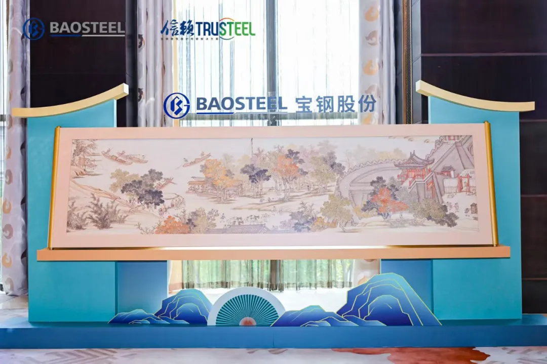 創(chuàng)新之筆正勾勒出材料世界的嶄新圖景。在一場主題研討會上,數(shù)米長的古風畫卷靜靜展開,亭臺錯落、人物靈動,細膩的筆觸與意境全然附著于特殊的彩涂鋼板之上。令人驚嘆的是,這并非傳統(tǒng)畫作,它源自寶鋼股份梅山基地最新突破的數(shù)碼彩印技術。