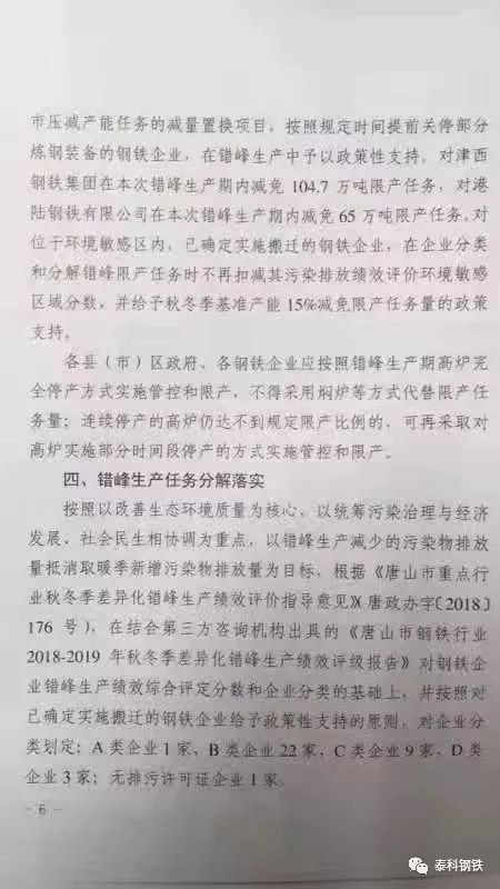 日前,唐山市2018-2019年秋冬季鋼鐵行業(yè)錯(cuò)峰生產(chǎn)方案經(jīng)過(guò)市政府15屆17次常務(wù)會(huì)議審議通過(guò),主要內(nèi)容為:分類執(zhí)行,對(duì)提前關(guān)停部分煉鋼設(shè)備的津西鋼鐵和港陸鋼鐵將分別減免104.7萬(wàn)噸、65萬(wàn)噸限產(chǎn)任務(wù)。
