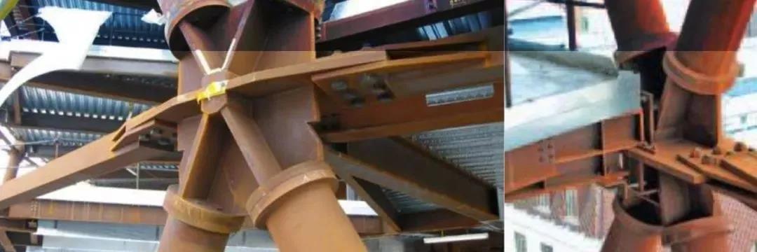 結(jié)構(gòu)形式為鋼框筒外加螺旋網(wǎng)格,六角形節(jié)點(diǎn)板連接各向網(wǎng)格以及樓面梁。