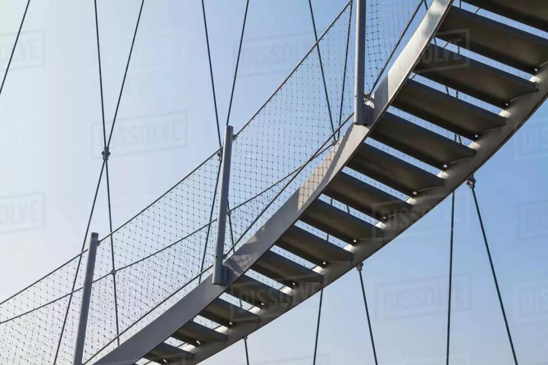 雙螺旋樓梯主要支撐在外圈的索網(wǎng)上,所以螺旋外側(cè)做強(qiáng),為較粗圓鋼管,同時(shí)連續(xù)的雙螺旋樓梯也提高了索網(wǎng)的穩(wěn)定性。