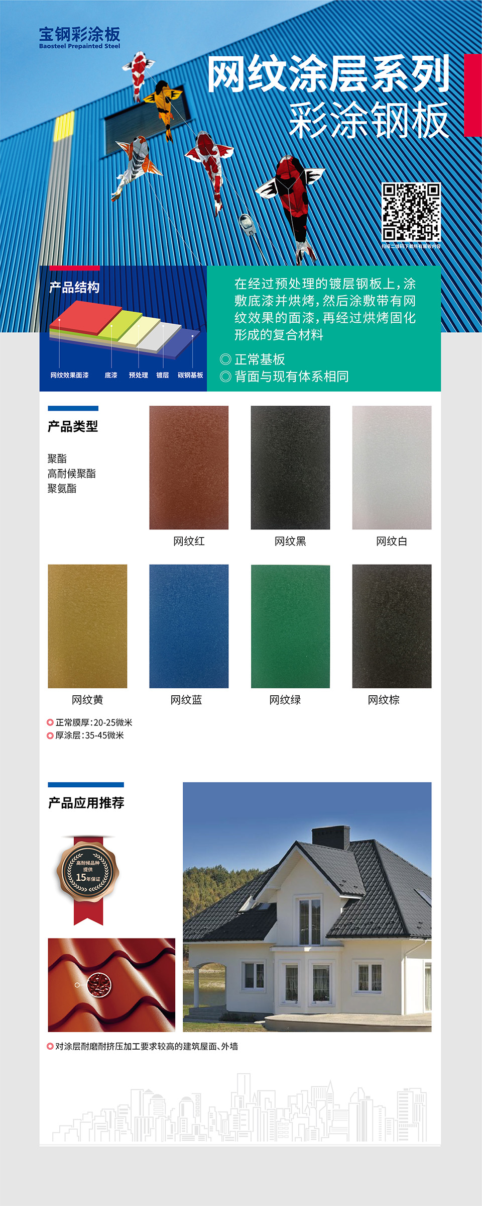 注:本網(wǎng)站數(shù)據(jù)部分來源寶鋼彩涂板企業(yè)標準BQB/440 -2014 ,寶鋼彩涂板產(chǎn)品手冊,及工程案例。